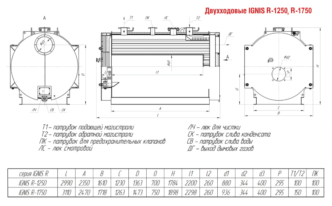Технические характеристики водогрейного двухходового котла ARCUS IGNIS R-1750