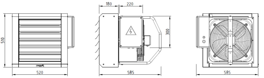 Габариты тепловентилятора ГРЕЕРС серии ЕС-21 IP54